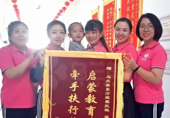 近期,烏蘭美早教中心托班王浩然小朋友的媽媽,為表達(dá)烏蘭美早教中心老師們對孩子的辛勤教育和悉心照料的感激之情,將印有“啟蒙教育第一師,牽手扶行始登峰”的錦旗送到老師手中,感謝托班的周靜老師及全體老師們,更加感謝烏蘭早教中心擁有如此出色的師資隊伍。